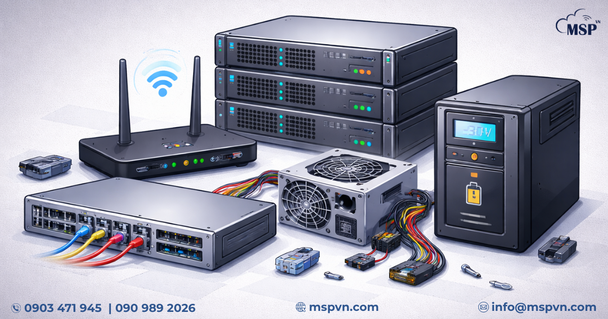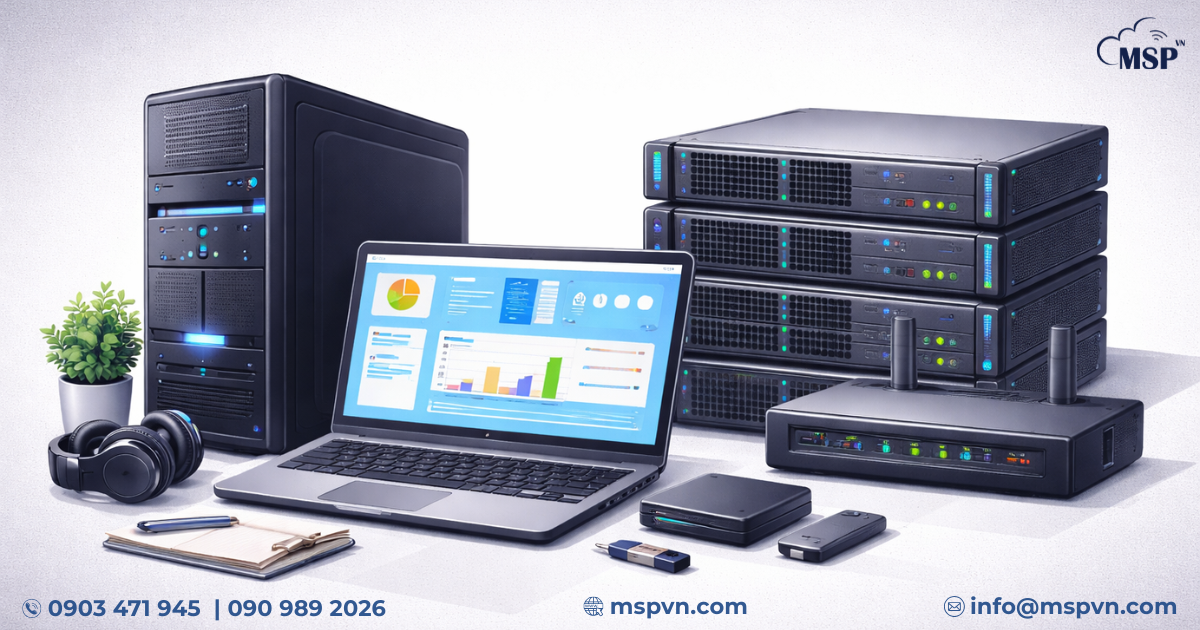 Nhìn chung, một hệ thống thiết bị IT hoàn chỉnh sẽ bao gồm nhiều nhóm thiết bị khác nhau từ máy tính, máy chủ, thiết bị mạng cho đến các hệ thống lưu trữ và thiết bị ngoại vi. Việc xây dựng danh sách thiết bị IT đầy đủ giúp doanh nghiệp đảm bảo hoạt động ổn định, tăng hiệu suất làm việc và giảm thiểu rủi ro trong quá trình vận hành.