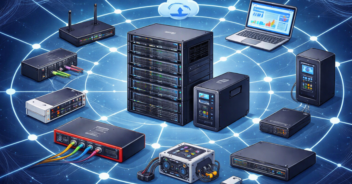 Một hệ thống thiết bị IT trong doanh nghiệp thường bao gồm nhiều loại thiết bị khác nhau, chẳng hạn như: