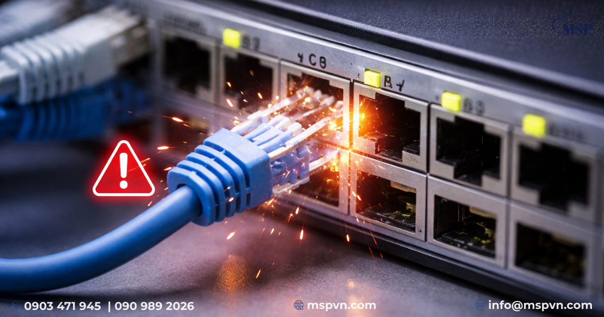 Dây mạng bị đứt, jack cắm lỏng hoặc switch bị lỗi đều có thể khiến Wifi văn phòng hoạt động chập chờn. Việc kiểm tra định kỳ hệ thống dây mạng là rất cần thiết.