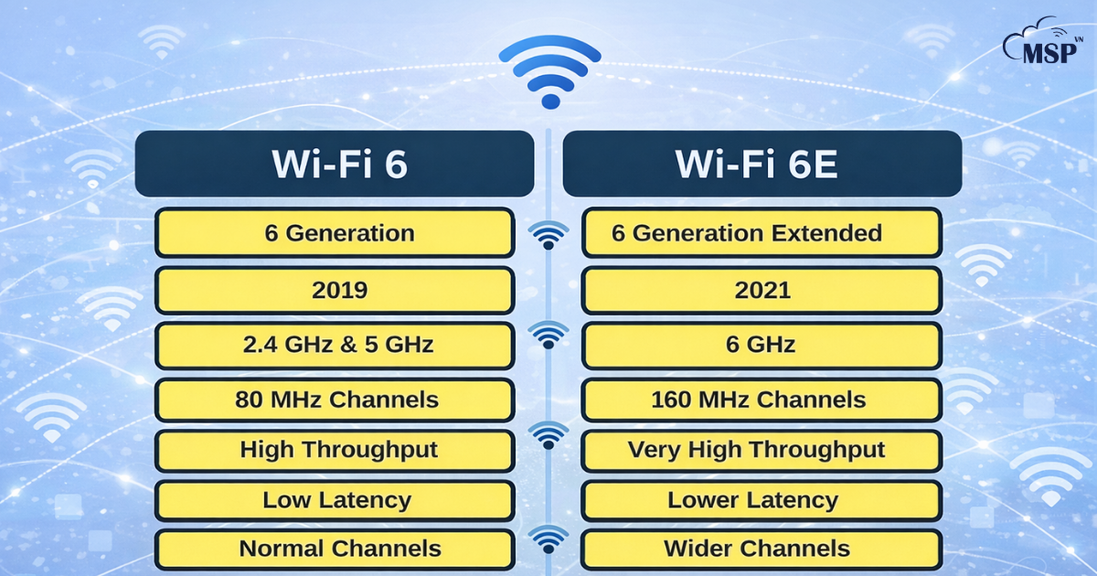 WiFi 6 và WiFi 6E đều được xây dựng dựa trên tiêu chuẩn IEEE 802.11ax, vì vậy hai công nghệ này có nhiều điểm tương đồng về nền tảng kỹ thuật. Tuy nhiên, WiFi 6E được xem là phiên bản mở rộng của WiFi 6 nhờ việc bổ sung thêm băng tần 6 GHz, mang lại nhiều cải tiến đáng kể về hiệu suất, độ trễ và dung lượng mạng.
