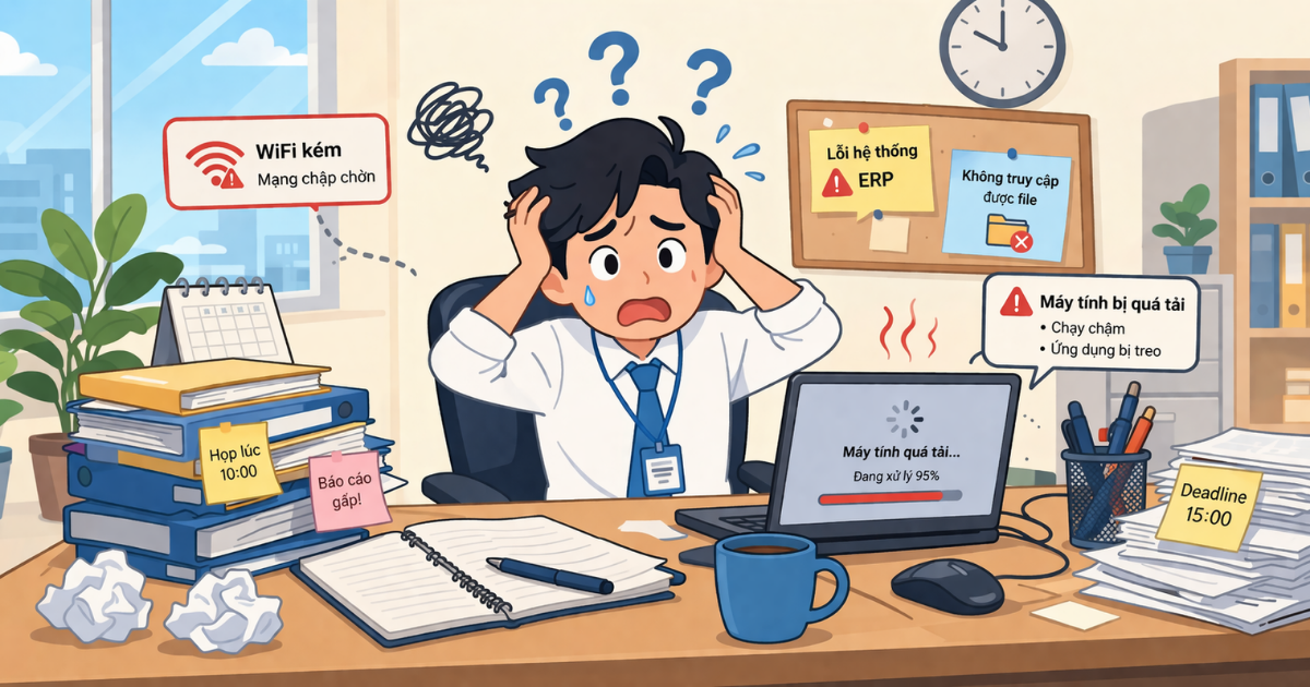Tuy nhiên, một thực tế đáng lo ngại là rất nhiều doanh nghiệp đang gặp phải các vấn đề IT doanh nghiệp nhưng chưa đánh giá đúng mức độ nghiêm trọng. Những sự cố tưởng chừng nhỏ như mạng chậm, lỗi phần mềm hay mất kết nối tạm thời lại có thể gây ra thiệt hại lớn về doanh thu, uy tín và trải nghiệm khách hàng.
