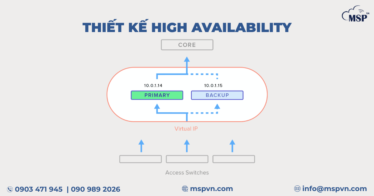 High Availability (HA) là mô hình thiết kế hệ thống nhằm đảm bảo các dịch vụ CNTT luôn sẵn sàng hoạt động ngay cả khi một thành phần trong hệ thống bị lỗi. Trong môi trường mạng doanh nghiệp, HA thường được áp dụng cho các thiết bị quan trọng như: