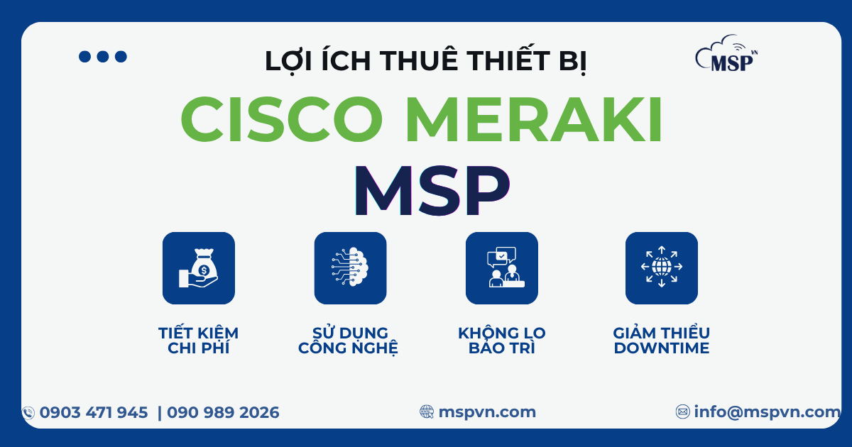 MSP – với hơn 13 năm có mặt trên thị trường – chuyên cung cấp dịch vụ thuê thiết bị Cisco Meraki uy tin – nhanh chóng – chất lượng cao cho Quý doanh nghiệp