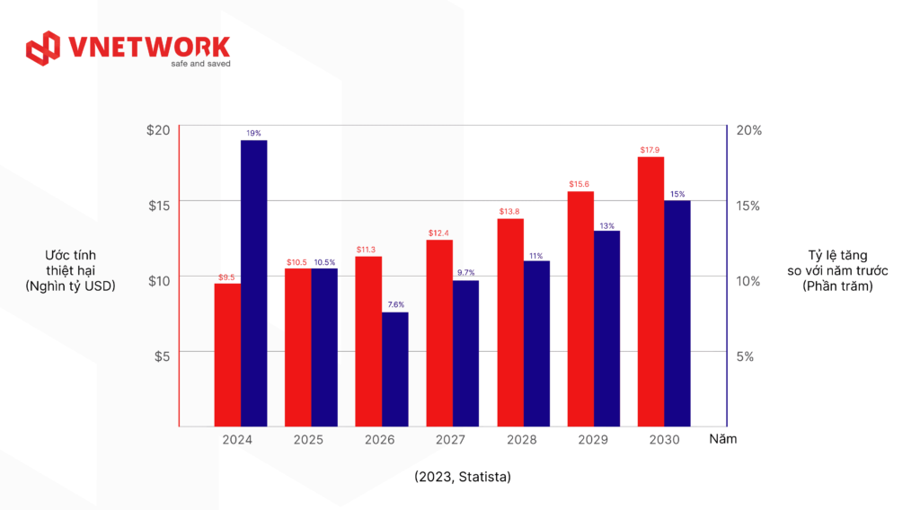 Thiệt hại ước tính do an ninh mạng trên toàn thế giới (2023, Statista)