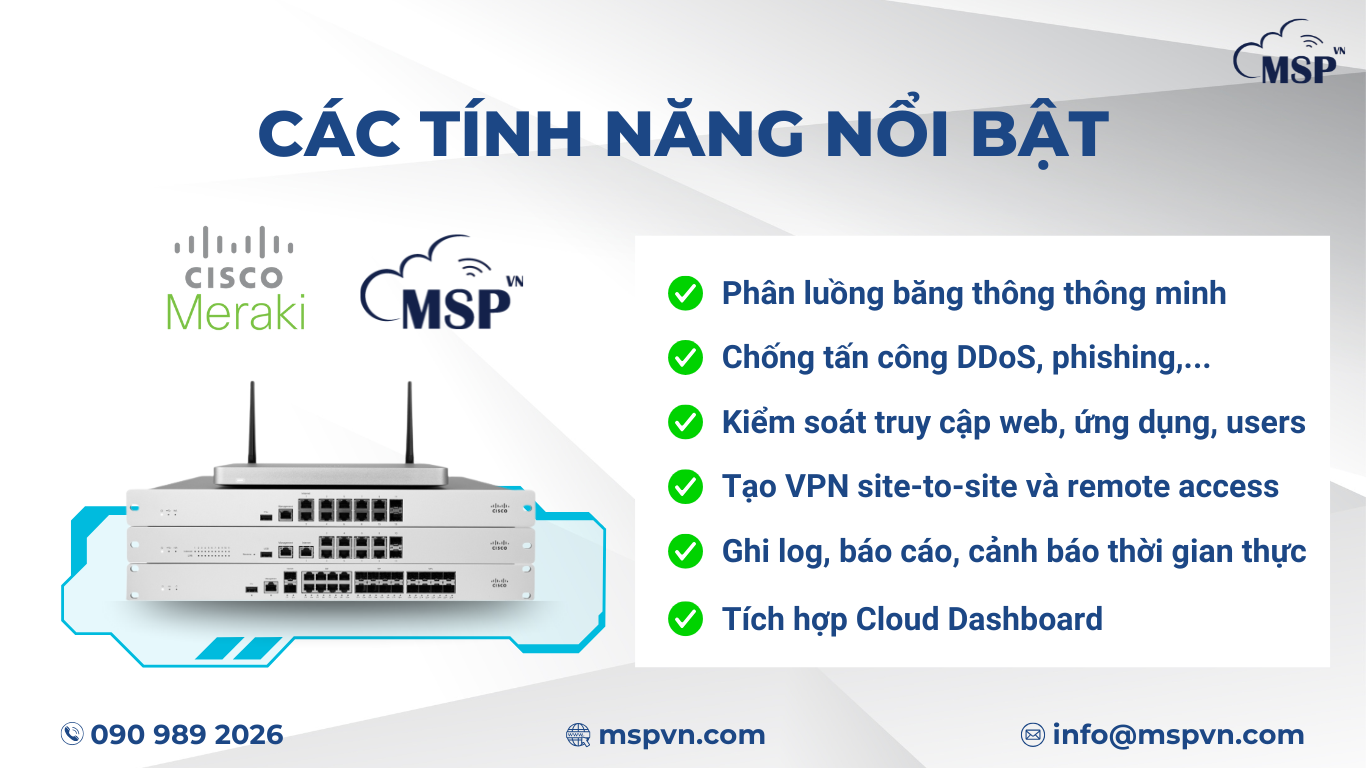 • Tích hợp Cloud Dashboard (như Cisco Meraki, Fortinet Cloud)