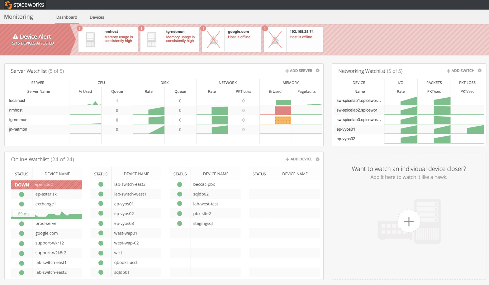 Spiceworks là công cụ hoàn toàn miễn phí, giúp các startup quản lý hệ thống mạng nội bộ một cách đơn giản mà hiệu quả.