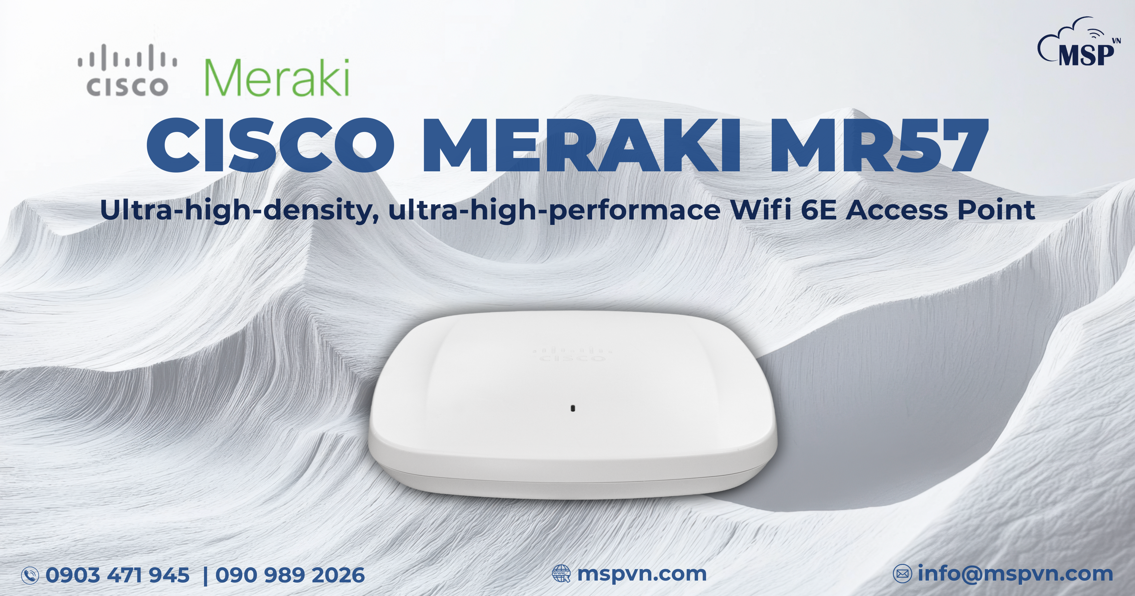 Với những ưu điểm trên, Meraki MR57 không chỉ là một thiết bị phát WiFi đơn thuần, mà còn là một giải pháp hạ tầng không dây toàn diện, giúp doanh nghiệp xây dựng hệ thống mạng hiệu suất cao, bảo mật và sẵn sàng cho các nhu cầu trong tương lai.